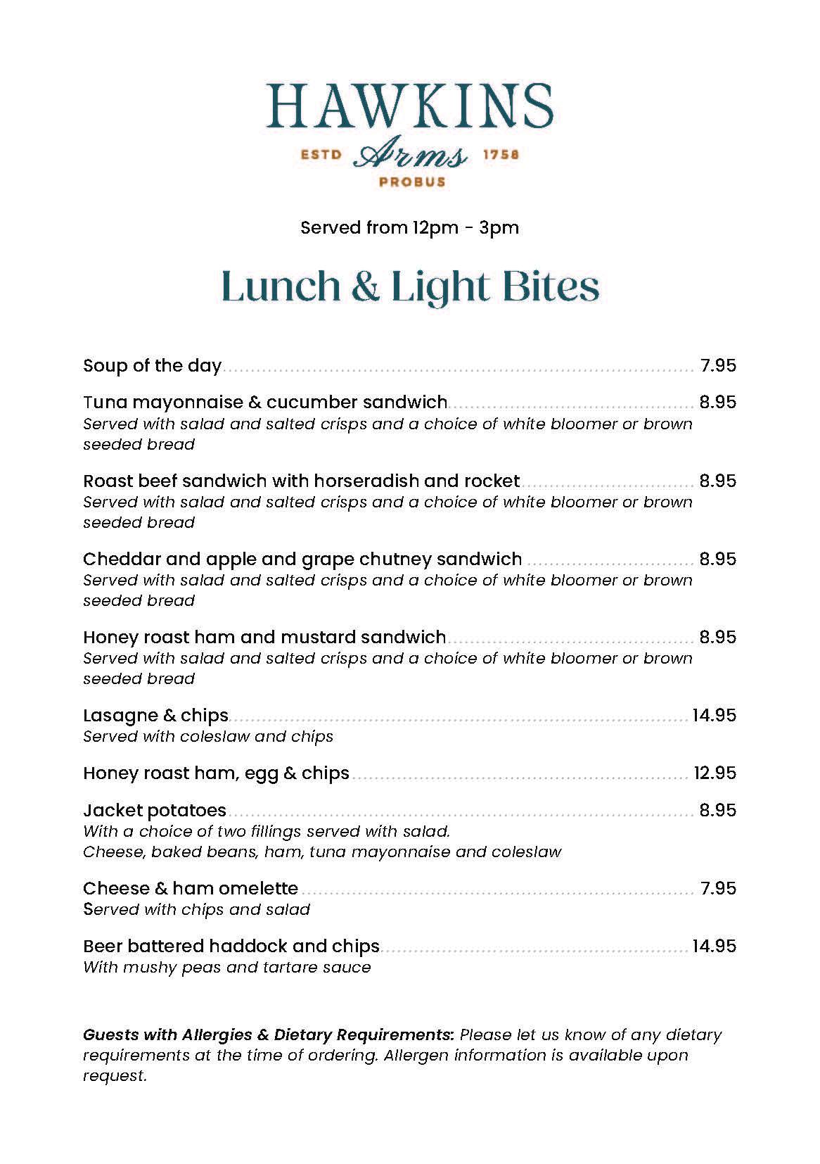 Our lunch menu offers something for everyone — from hearty favourites to fresh, simple plates made for easy daytime dining. Ideal for friends, families and midweek treats..